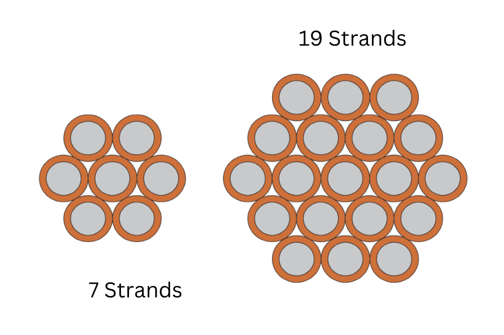 The 19-strand wire uses nineteen finer individual wires, representing a higher-performance solution.